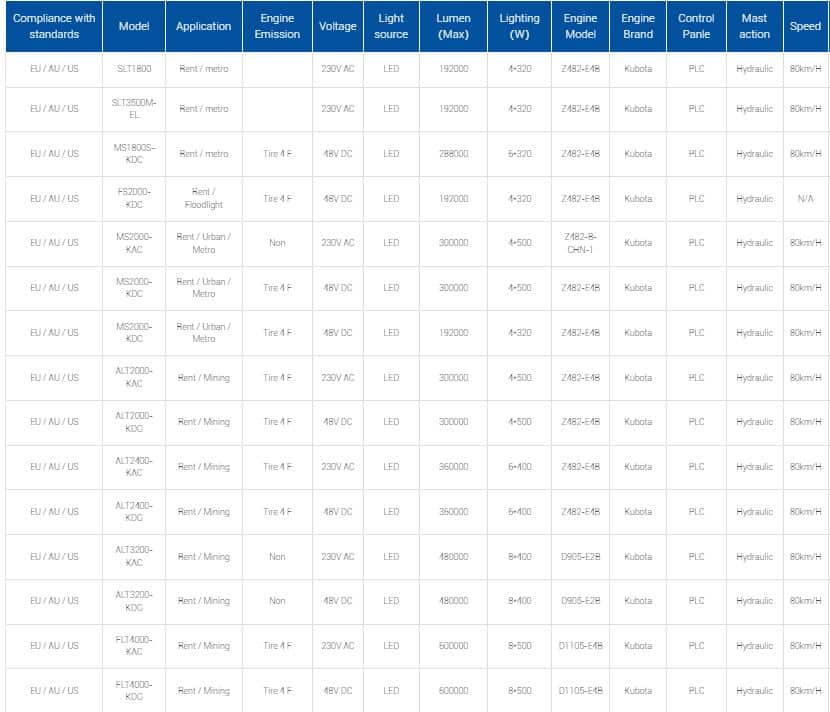 Engine-driven lighting towers are powered by internal diesel or gasoline engines, providing the necessary electricity for the lighting equipment. PowerLink’s FS2000、MS2000、SLT3500 and other series of lighting towers are powered by diesel engines. These towers typically combine efficient lighting systems with generators, ensuring continuous illumination and power during outdoor activities.