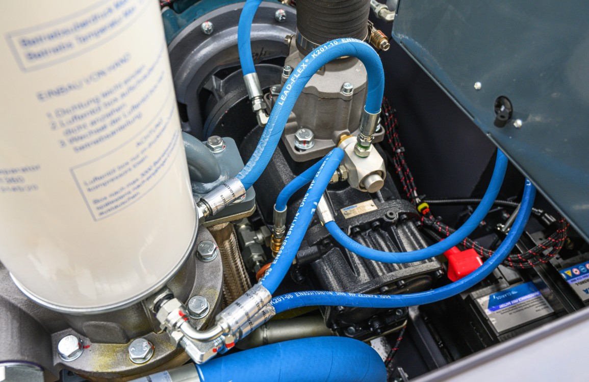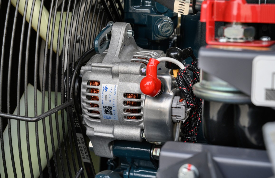 PowerLink’s air compressor, designed for superior durability and quiet operation, is equipped with an industrial-grade muffler with condensate drain, a butterfly valve intake system for automatic airflow adjustment, and a dual-protection air filtration system—protecting both engine and compressor, with an optional dual-stage filter available for dusty environments. A heavy-duty radiator with high-temperature protective grilles ensures efficient cooling even in 50°C conditions.